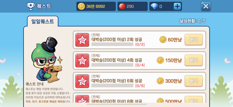 ✅ 일일 미션: 특정 조건을 만족하면 추가 보상을 받을 수 있으며, 미션을 완료하면 누적 보상도 지급됩니다.