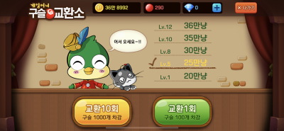 - 구슬을 모아 구슬 교환소에서 게임 머니로 환전할 수 있습니다.