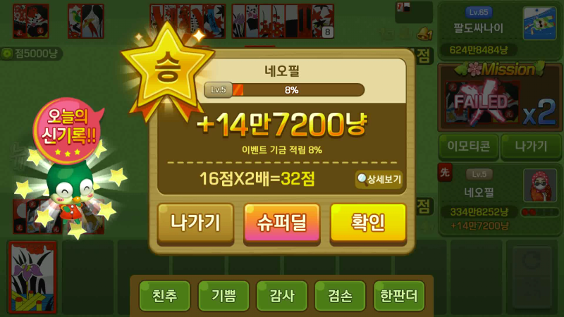 피망 뉴맞고는 출석 체크 보상과 일일 미션을 통해 꾸준히 게임 머니를 지급합니다.