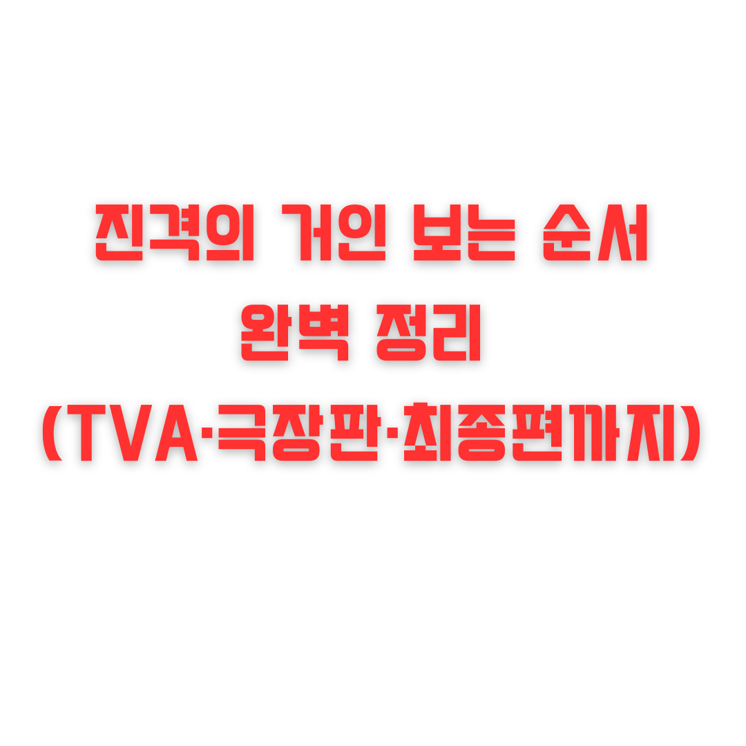 오늘은 헷갈리는 진격의 거인 TVA + 극장판 + 파이널 시즌을 정확한 순서와 감상 팁으로 나누어 완벽하게 안내해드립니다.
