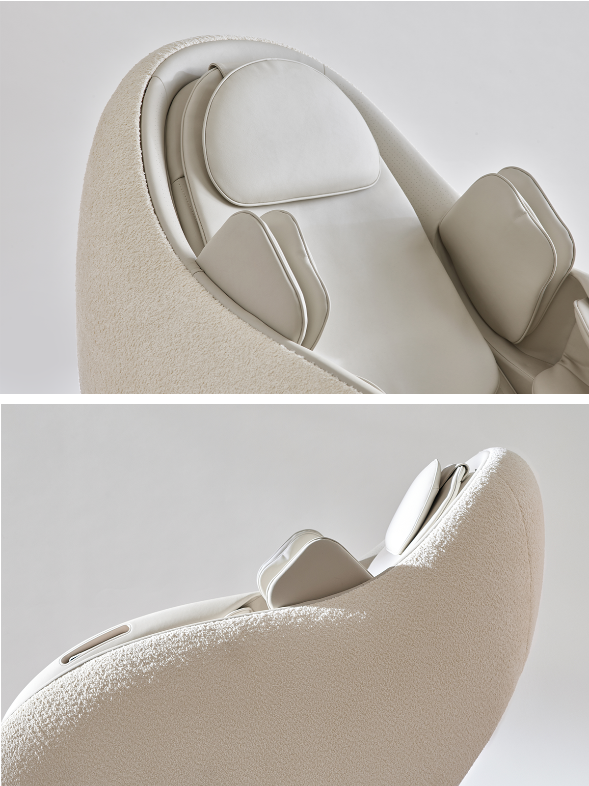 파우제 M8은 헬스테리어 트렌드를 반영하여 세련되고 고급스러운 디자인을 자랑합니다. 부드러운 곡선과 고급스러운 소재는 어떤 인테리어에도 자연스럽게 어울립니다. 특히, 크림 화이트 색상의 부클레 패브릭 커버는 공간에 따뜻함과 화사함을 더해줍니다.
